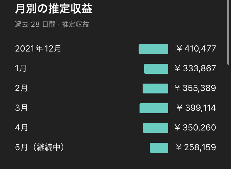 まあ5年くらいやってるから過去の分が大きいわ